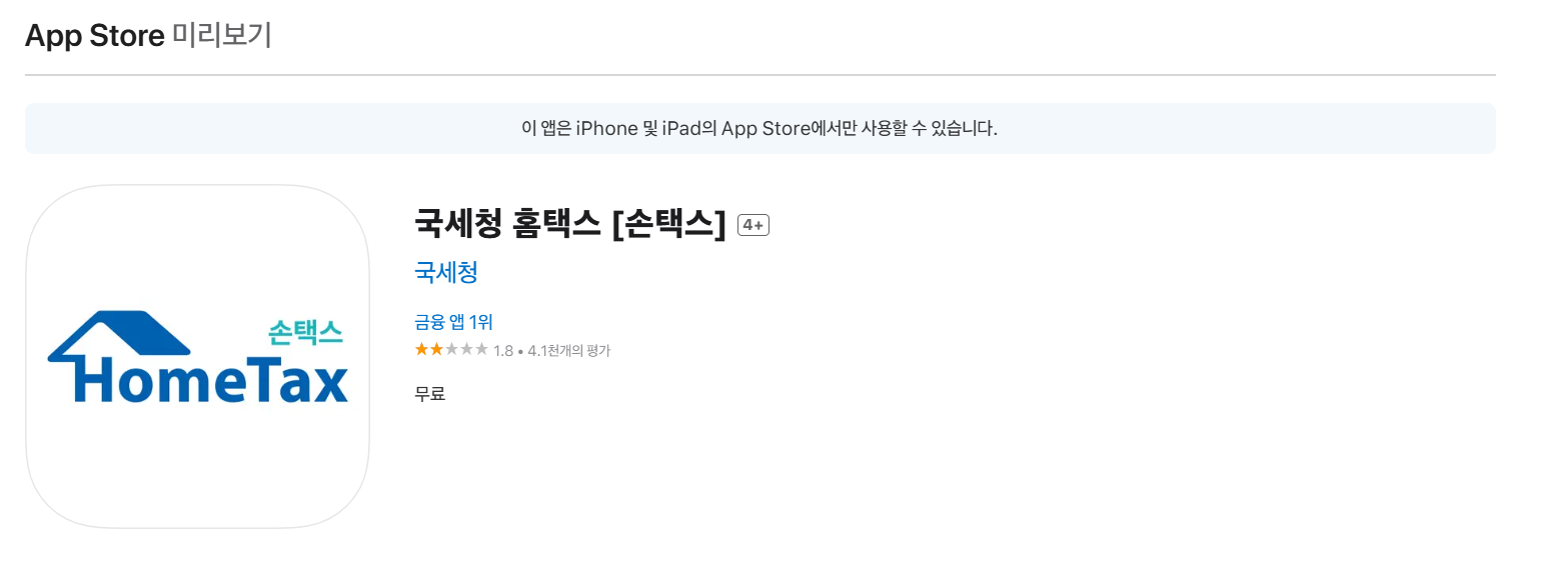 국세청 홈택스 앱을 스마트폰에 설치합니다.