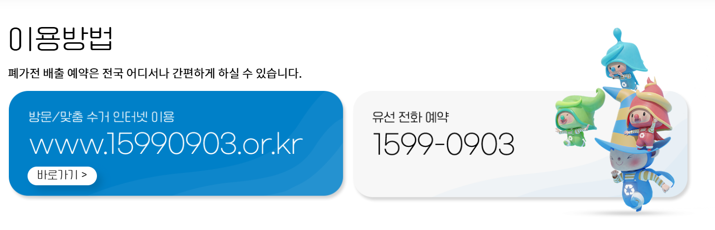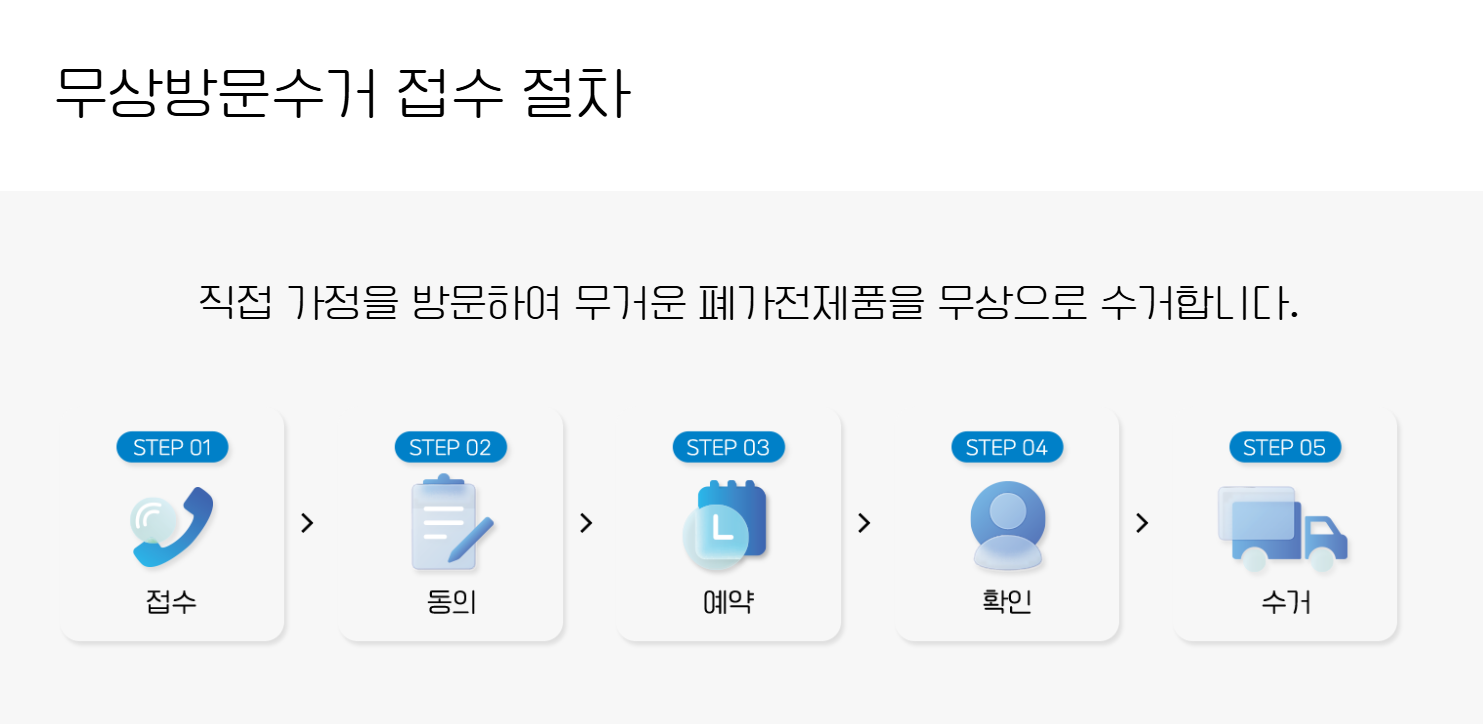 이후 수거 당일에는 해당 가전제품을 문밖에 내놓기만 하면 됩니다.