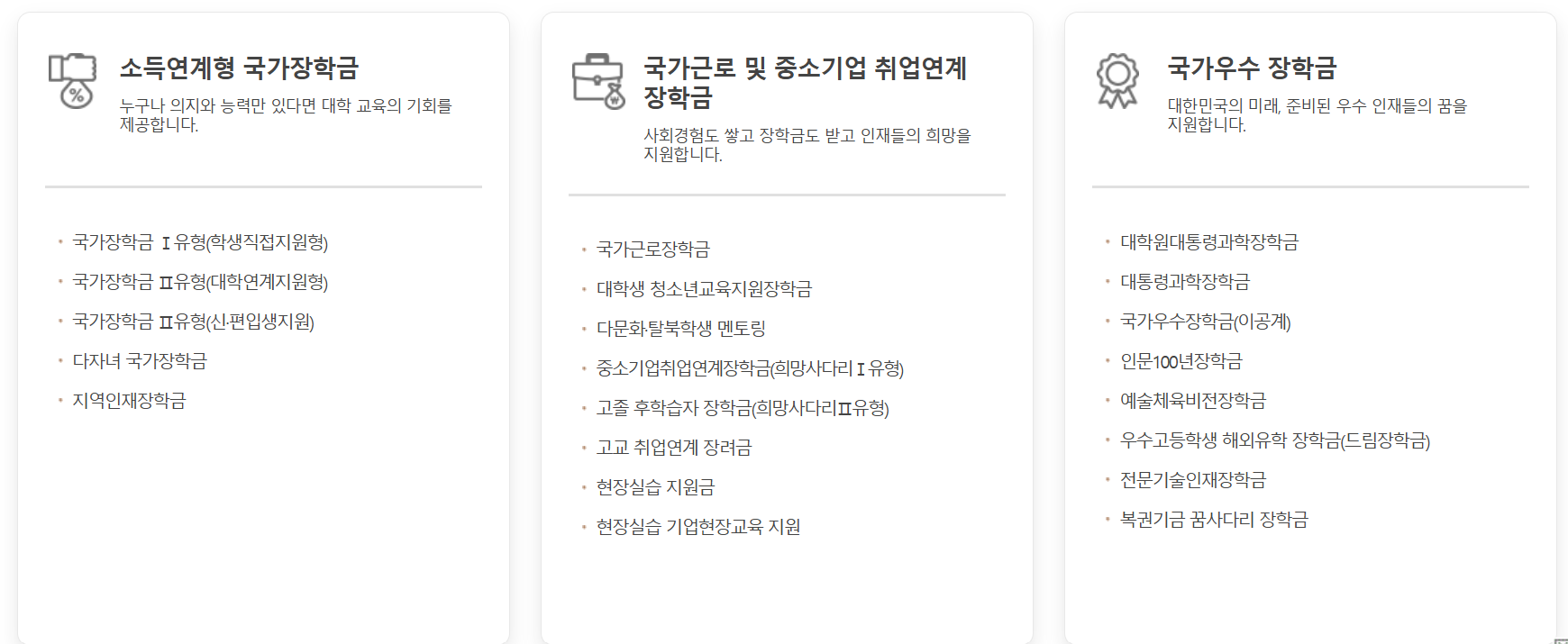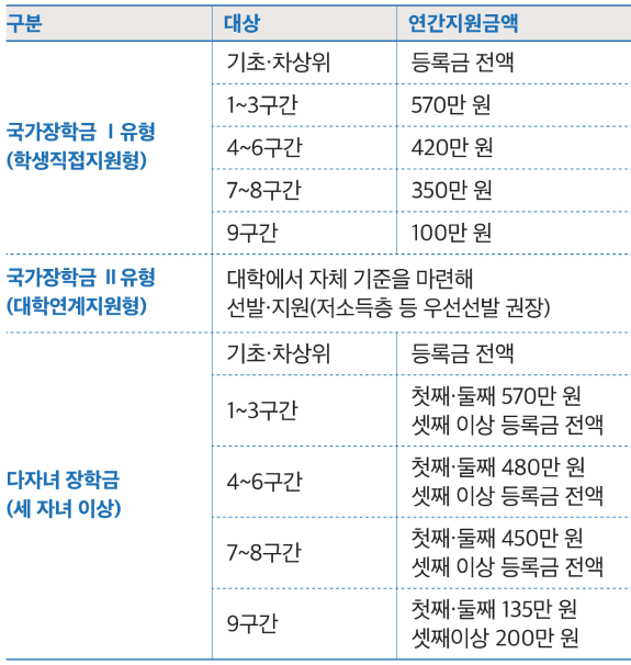 국가장학금 I유형소득 수준이 낮은 대학생을 대상으로 한 직접 지원