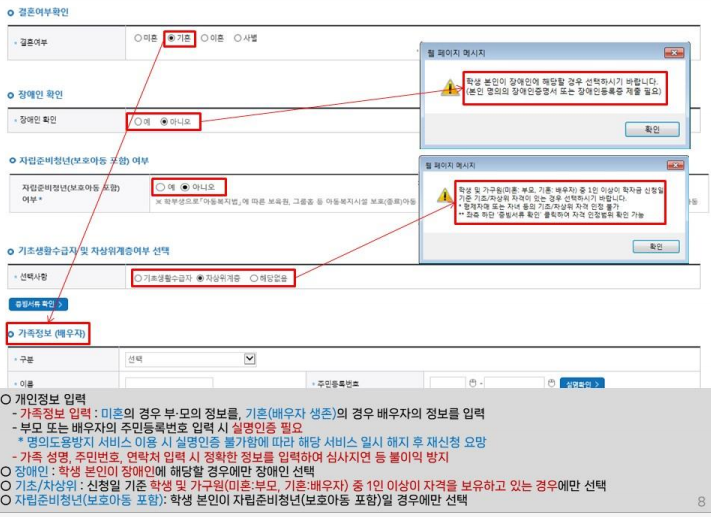 가족정보 및 소득정보 입력
