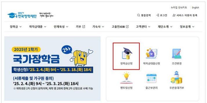신청 방법: 국가장학금 신청 시 함께 신청 가능