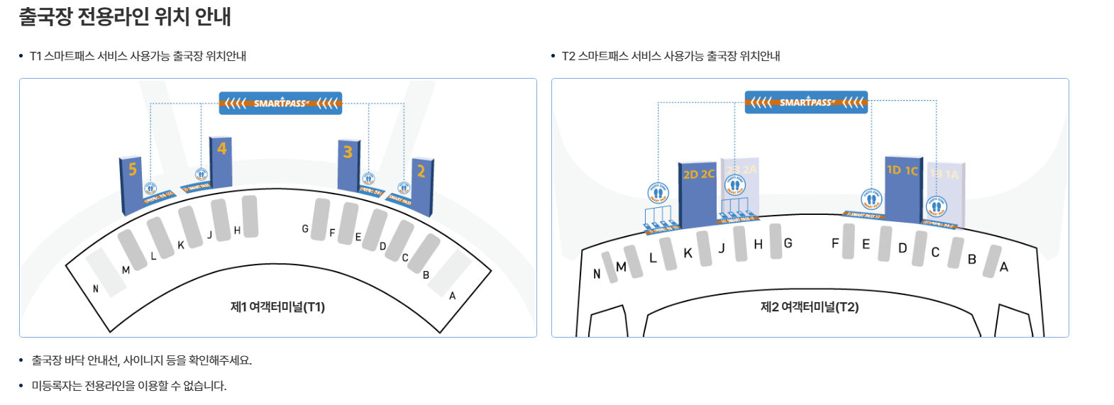>인천공항 제1여객터미널 및 제2터미널 모두 스마트패스 전용 통로 운영