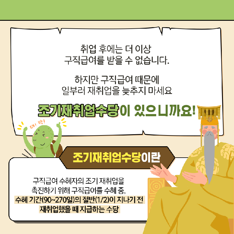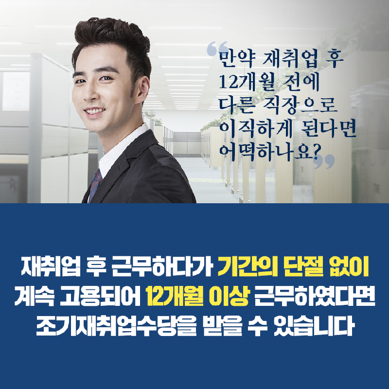 놓치면 아쉬운 조기취업수당, 빠르게 재취업하신 분이라면 반드시 챙겨보세요.