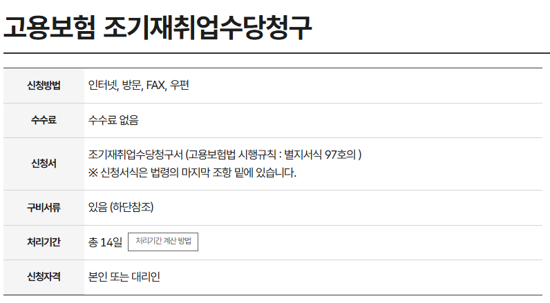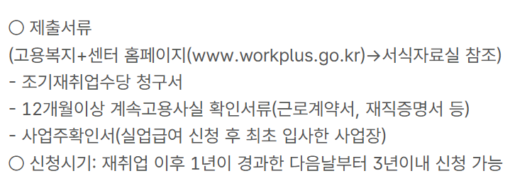 실업급여를 수급 중이거나, 재취업 계획이 있는 분들은 반드시 조기취업수당 조건을 확인하고, 신청 기한 내에 제출하시길 권장합니다.