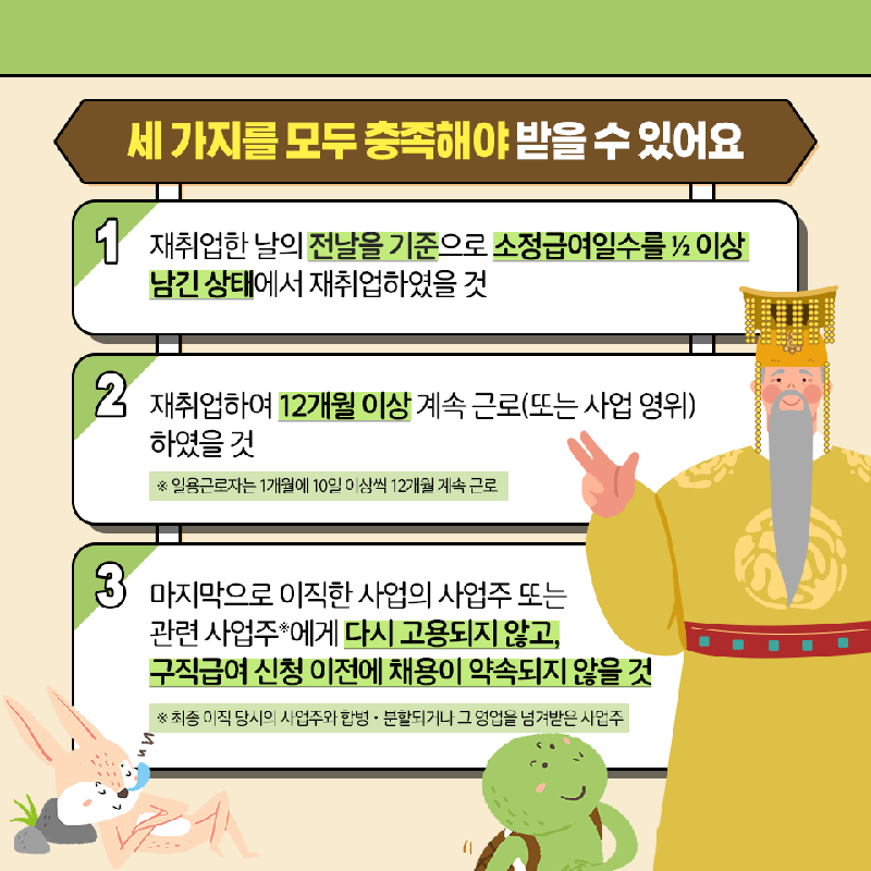 재취업한 사업장이 고용보험에 가입된 상태여야 합니다.