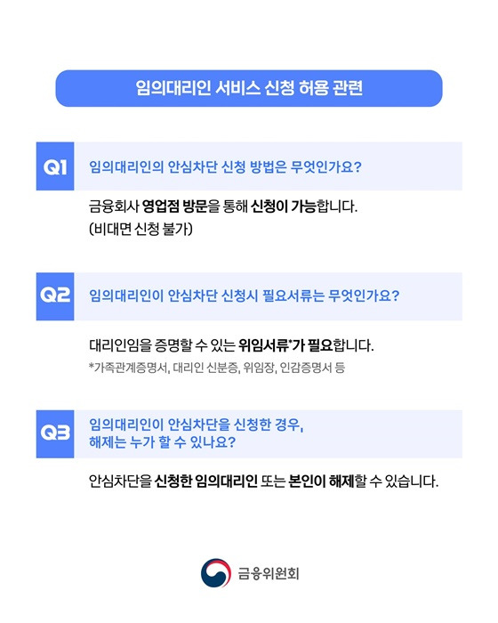 이 서비스는 특히 개인정보 유출 사고가 잦은 현대 사회에서, 소비자가 직접 자신의 금융 안전망을 설계할 수 있도록 해주는 매우 유용한 제도입니다.