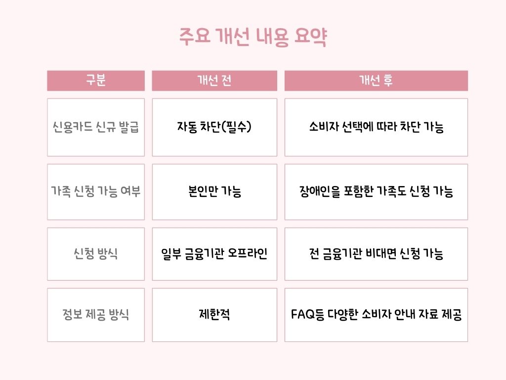 2025년부터 여신거래 안심차단서비스에 다음과 같은 편의성 중심의 개선 사항이 도입되었습니다.