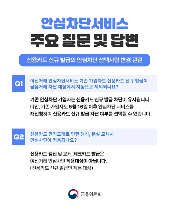 기존에는 여신거래 안심차단서비스에 가입하면 신용카드 신규 발급이 자동으로 차단되었습니다.