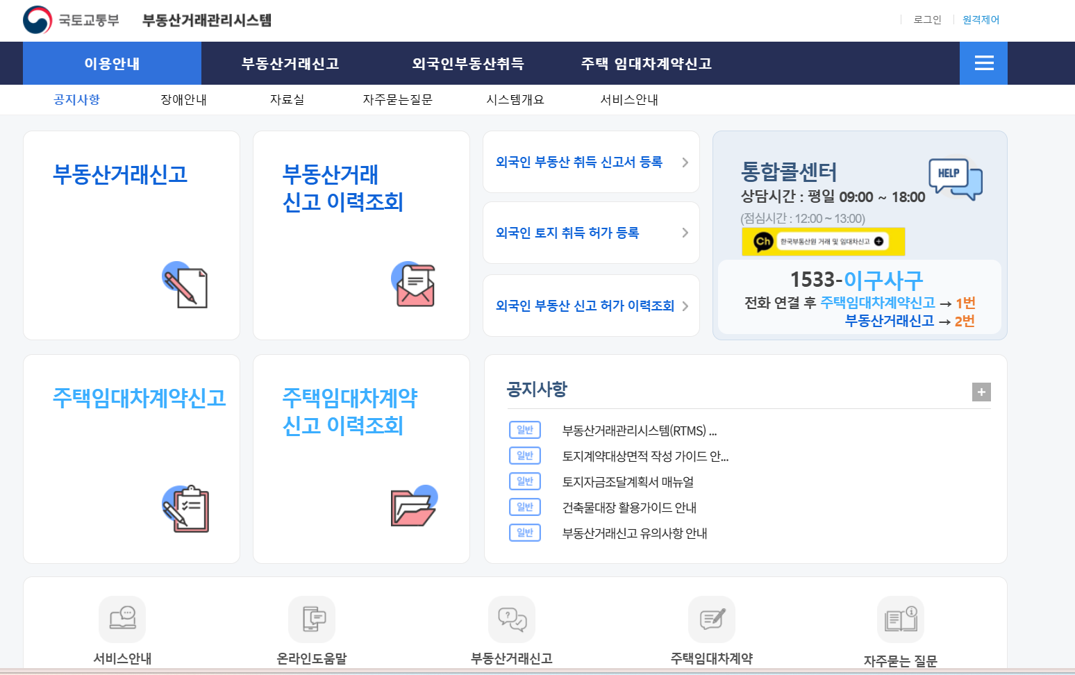 혹시 궁금한 점이 있거나 신고가 어려우시다면 국토교통부 콜센터(1533-5949) 또는 가까운 주민센터에 문의해보시길 권장드립니다.