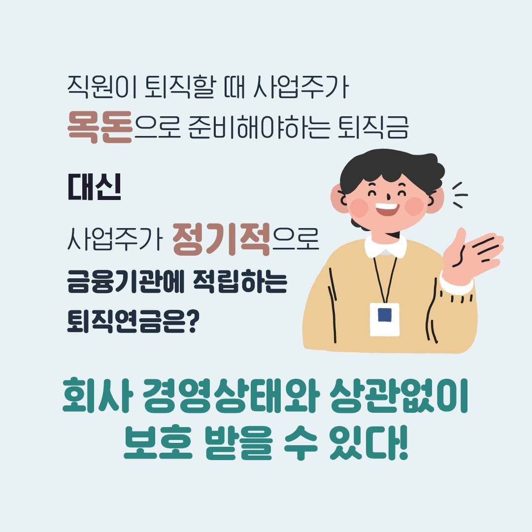 이 제도는 근로자의 노후 소득 보장을 강화하고, 사업주의 퇴직금 지급 부담을 분산시키는 데 목적이 있습니다.