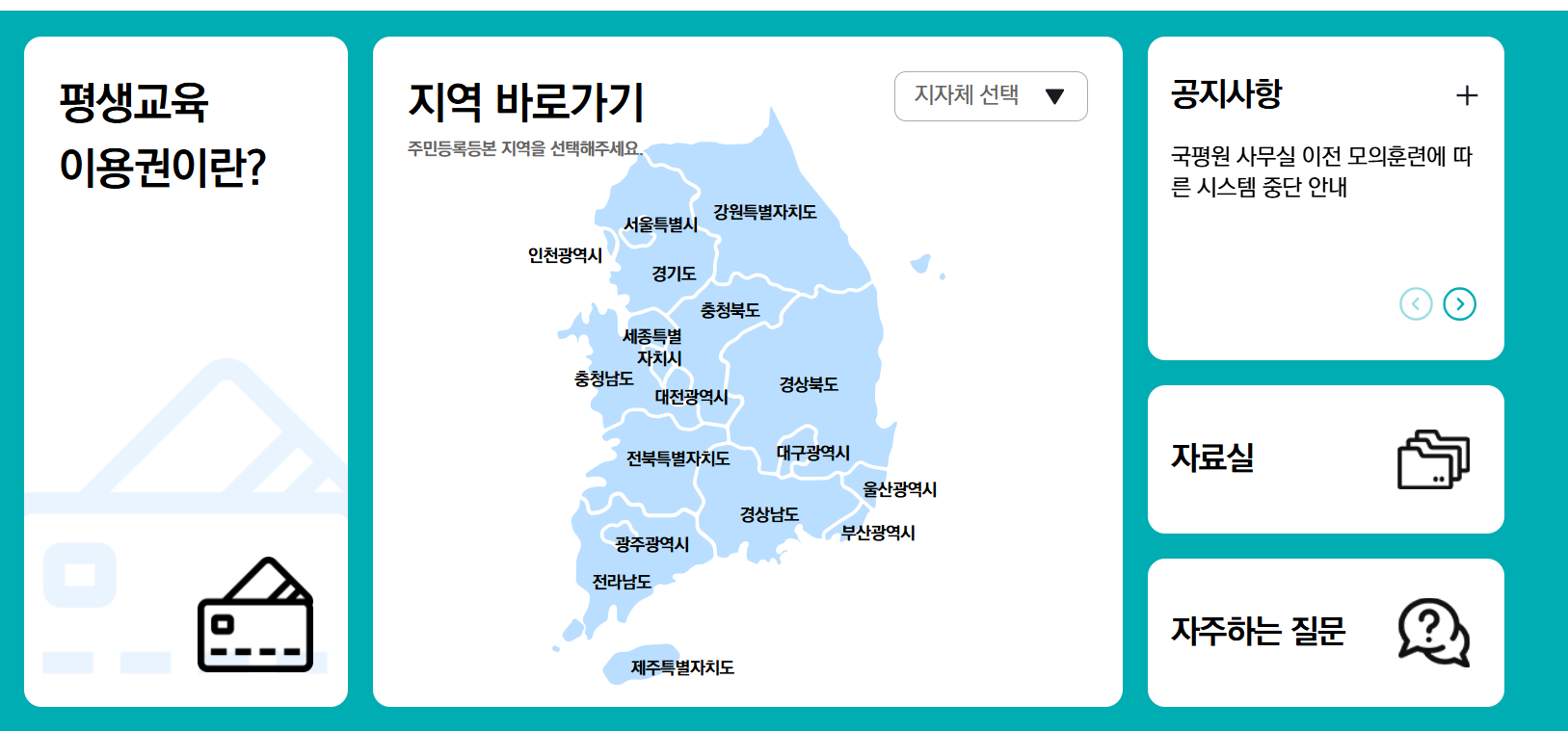 지역 평생교육센터 전화번호: 홈페이지 내 지역별 안내 참고