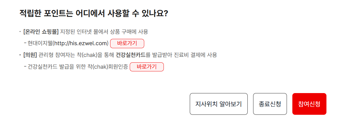 이후, 걷기 활동을 비롯해 건강검진, 교육 프로그램 참여 등 다양한 건강 실천 활동을 통해 자동으로 포인트가 적립됩니다.
