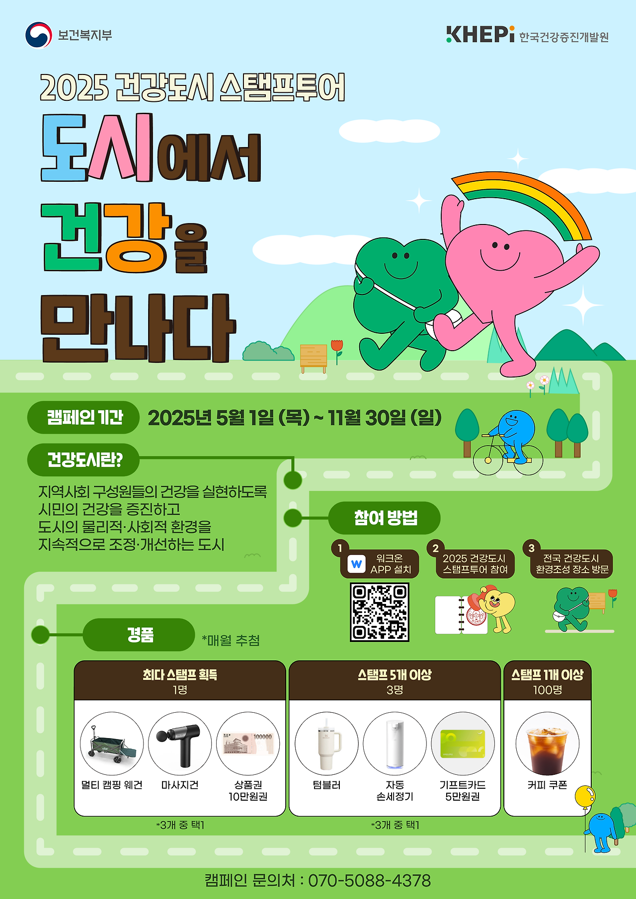 특히 ‘건강도시 스탬프투어’는 시민들이 지정된 장소를 방문해 스마트폰 앱으로 인증을 남기면 스탬프 포인트를 부여하는 재미있는 이벤트입니다.