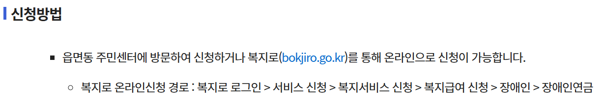 장애인 연금 신청방법