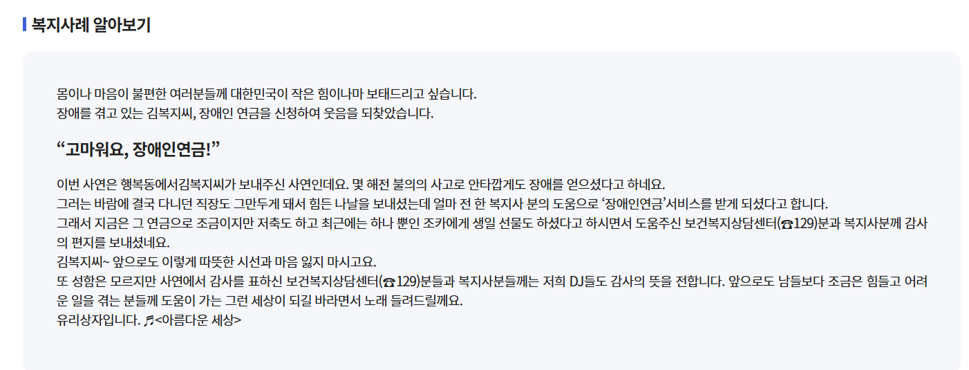 보건복지 상담센터 바로가기 : https://www.129.go.kr/