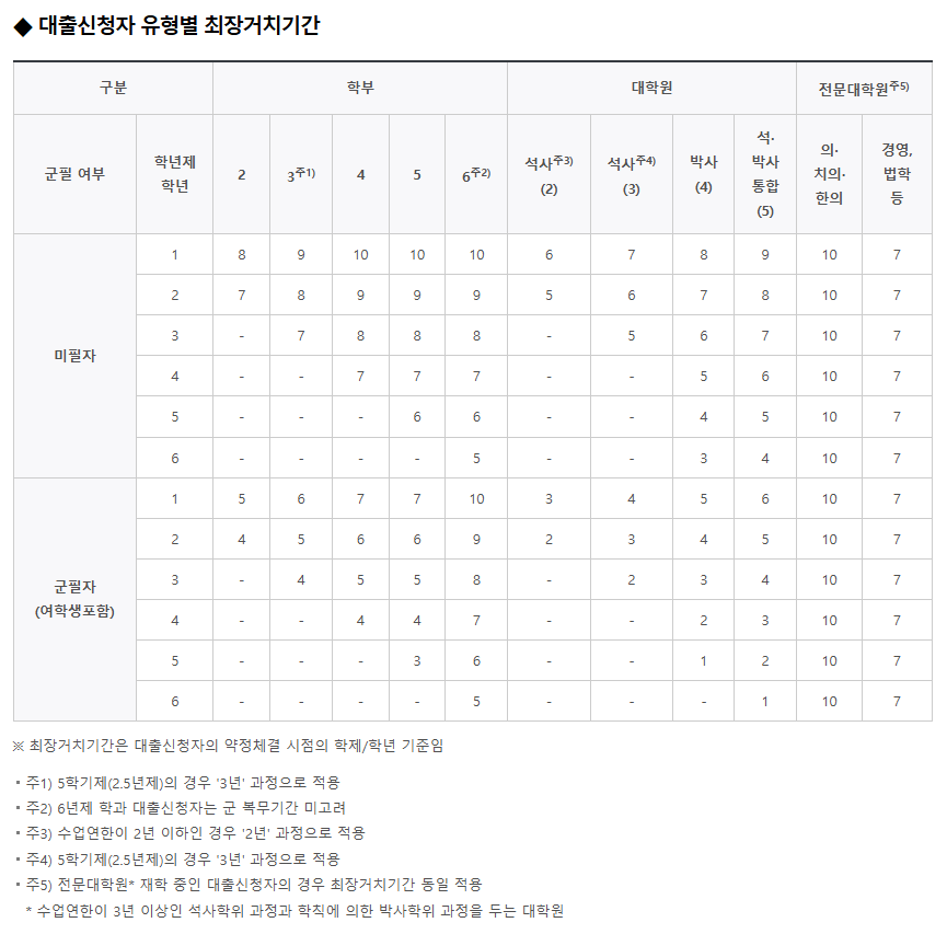 또한 중요한 점은 정규 학제 내에서만 대출이 가능하다는 점입니다. 예를 들어, 4년제 대학에서 8학기를 초과하면 일반적으로 대출이 불가능하므로 학사 일정 관리에도 주의가 필요합니다.