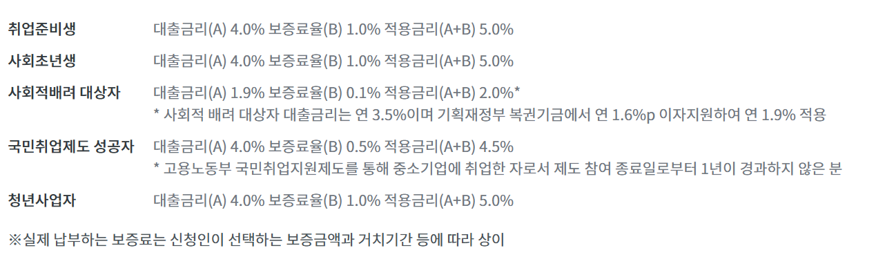 보증수수료: 0.1% ~ 1.0% (신용도에 따라 차등 적용)