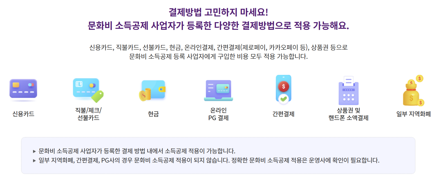 현금 결제나 계좌이체 등 증빙이 되지 않는 방식은 공제를 받을 수 없으니 유의해야 합니다.