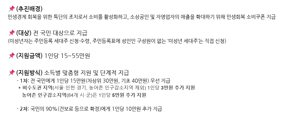경제적 어려움을 극복하고 민생을 회복하기 위한 첫걸음인 만큼, 국민 모두가 혜택을 놓치지 않고 잘 활용할 수 있길 바랍니다.