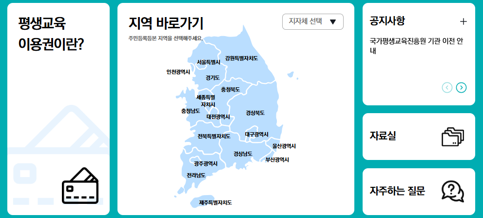 평생교육이용권 홈페이지: https://www.lllcard.kr/main