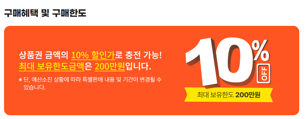 또한 10% 할인된 가격으로 구매가 가능해 많은 분들이 생필품이나 식료품을 구매할 때 적극적으로 활용하고 있어요.
