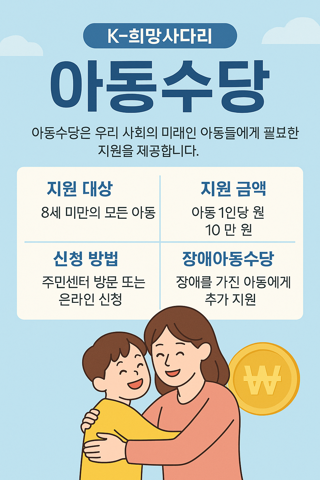 우리 아이의 행복한 미래를 위한 첫걸음, 바로 아동수당입니다. 매달 지급되는 아동수당은 부모님의 양육 부담을 줄여주고, 아이들이 건강하게 성장할 수 있도록 돕는 중요한 제도인데요. 2025년을 맞아 아동수당 제도에도 일부 변화가 생겼습니다.