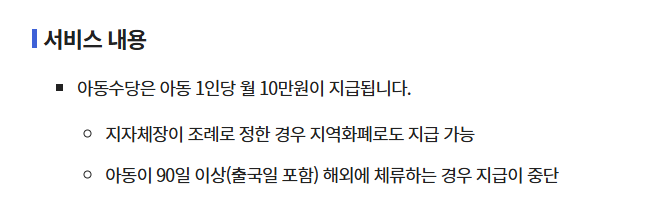 지원금액 월 10만 원 (장애아동 및 다자녀 추가지원)