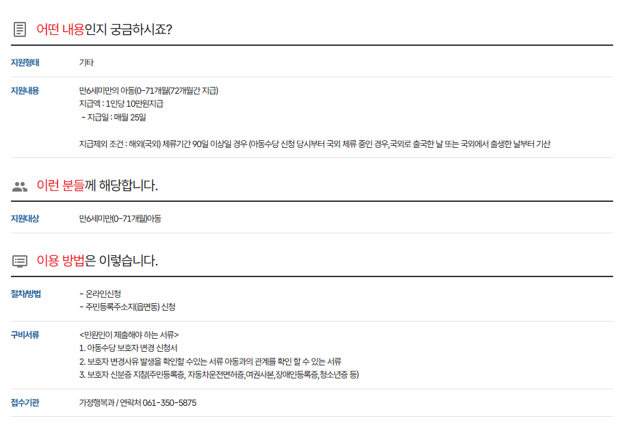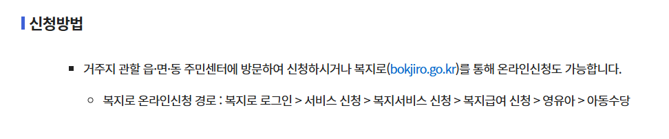 신청대상 만 8세 미만(95개월 이하) 모든 아동