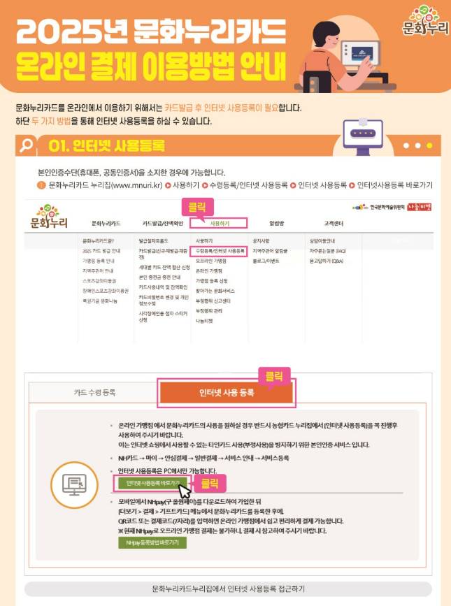 문화누리카드 누리집에 접속해 본인 인증 후 신청