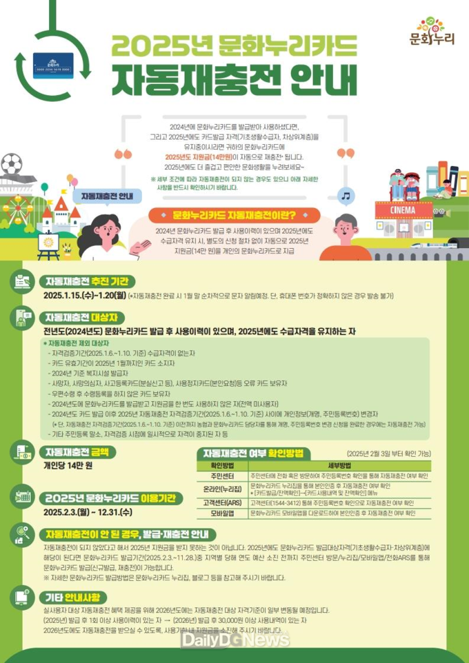 정부는 저소득층에게 문화, 여행, 스포츠 관련 비용을 지원하여 삶의 질을 높이고자 합니다. 2025년 현재 문화누리카드는 더 확대된 예산과 간편한 신청 절차를 통해 더 많은 국민이 혜택을 누릴 수 있도록 개선되었습니다.