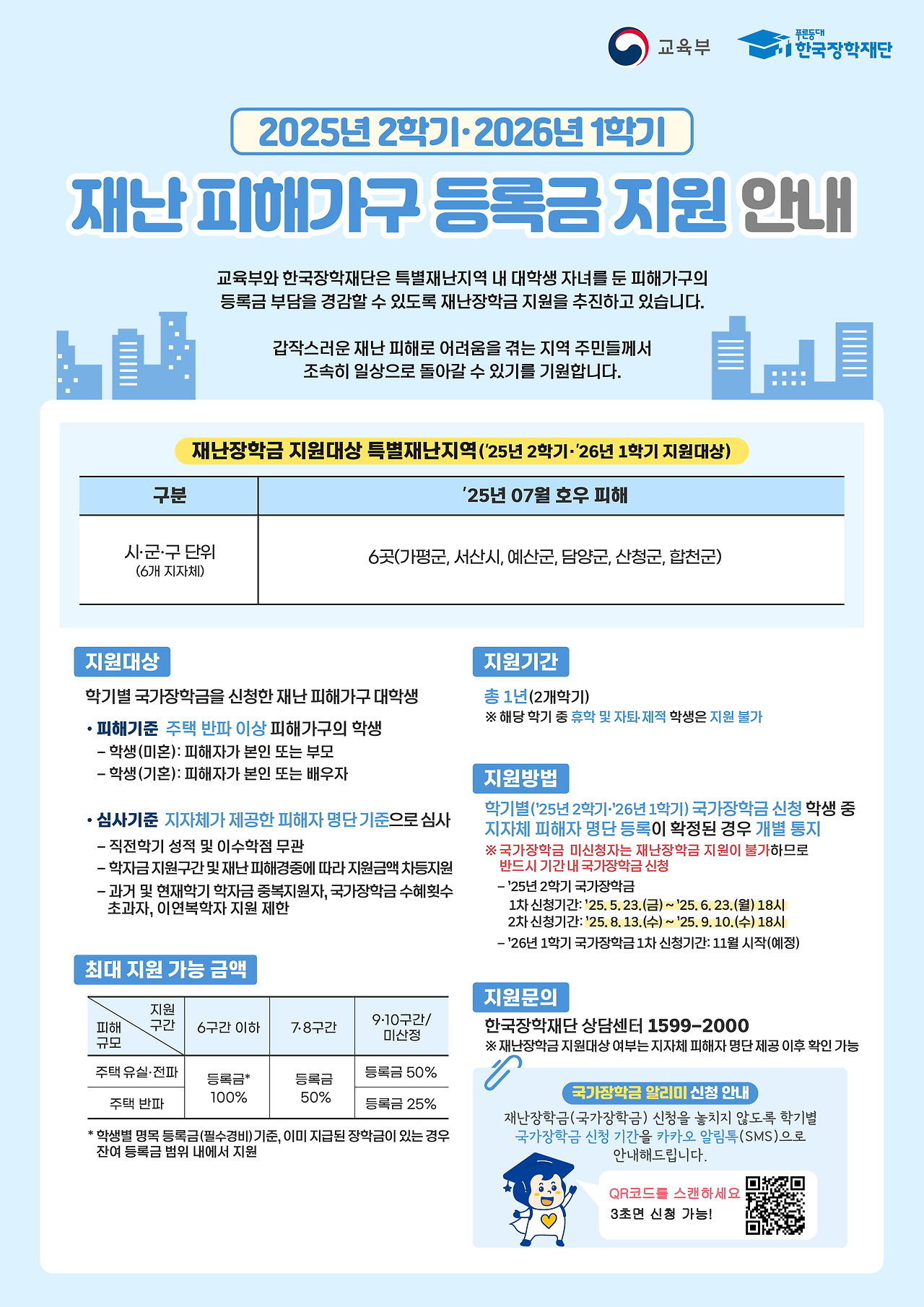 아울러, 재난 피해 가구의 학생에게는 추가 지원이 이뤄지며, 소득이 갑자기 줄어든 경우에도 소명 자료를 제출하면 긴급 지원을 받을 수 있습니다.