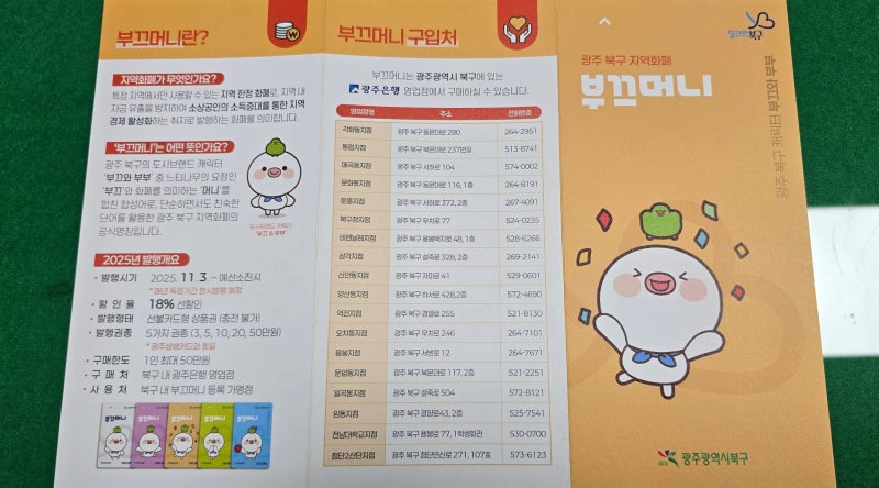 부끄머니는 만 14세 이상이면 누구나 구매 가능하며, 북구 관내 광주은행 18개 지점에서 신분증을 지참해 발급받을 수 있습니다.