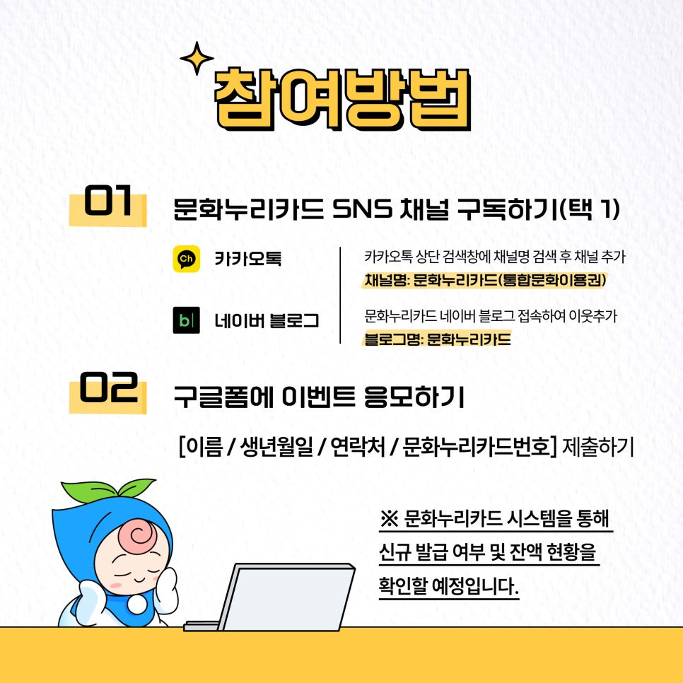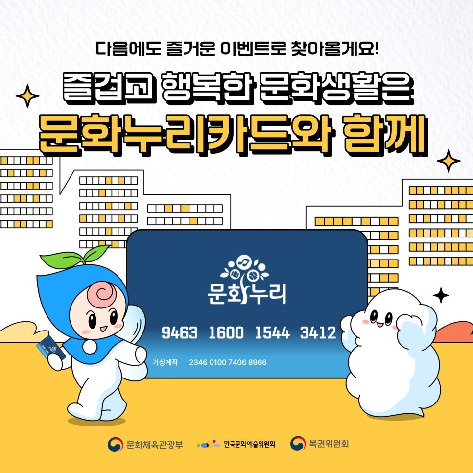 이번 글에서는 문화누리카드에 대해서 자세히 알아보도록 하겠습니다!