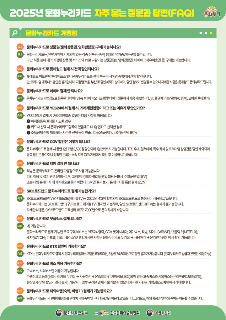 문화누리카드의 사용처는 매년 확대되며, 2025년에는 더욱 다양한 생활문화 영역까지 포함되었습니다.
