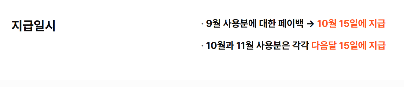 A. 각 사용월 다음 달 중 지급이 일반적입니다. 예: 9월 소비분 → 10월에 지급. 지급 수단은 디지털 온누리상품권입니다.