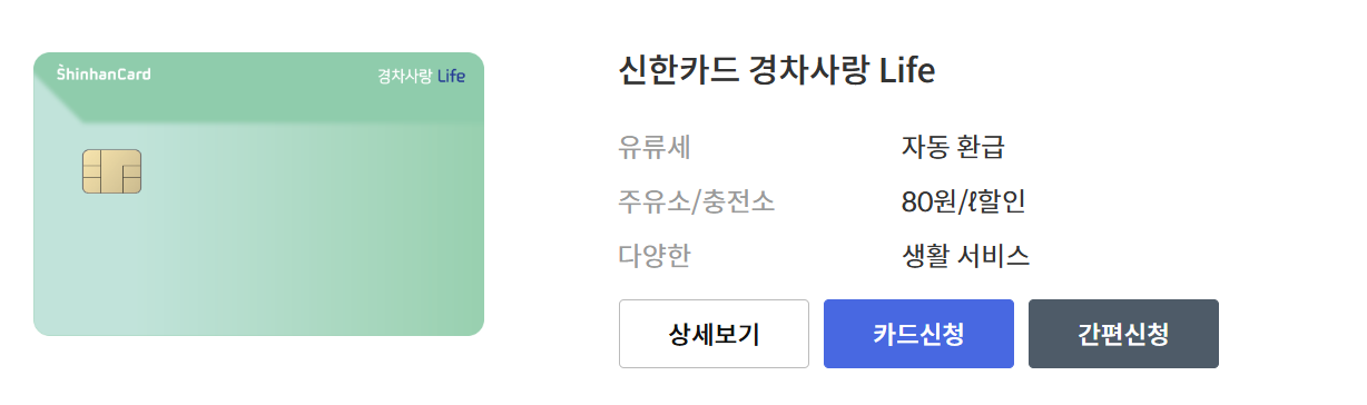 카드사 홈페이지 또는 앱에서 "경차사랑카드" 검색