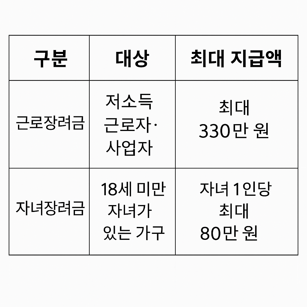 근로·자녀장려금은 단순한 현금 지원을 넘어, 저소득 가구의 삶의 질을 높이고 자립을 응원하는 제도입니다.