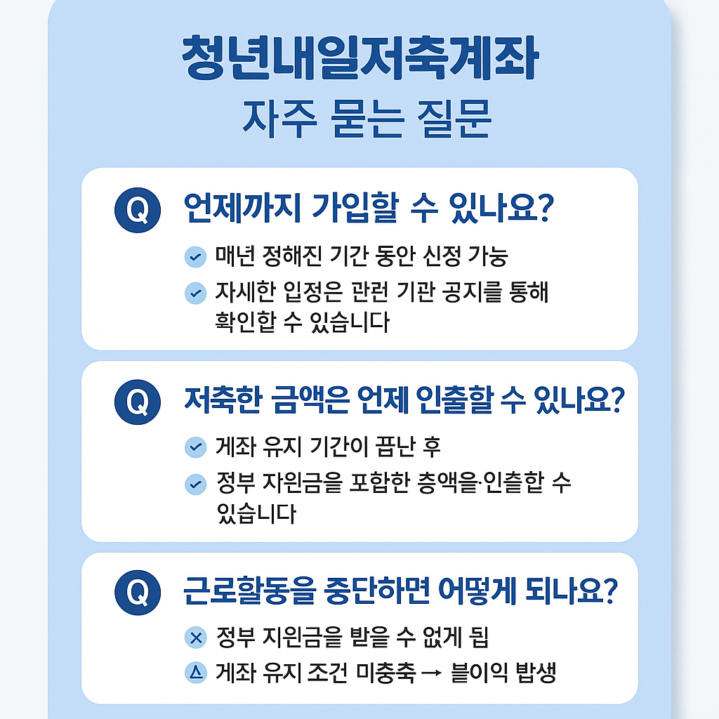 청년내일저축계좌는 가입 이후 일정 기간 동안 지속적인 조건을 충족해야 합니다.