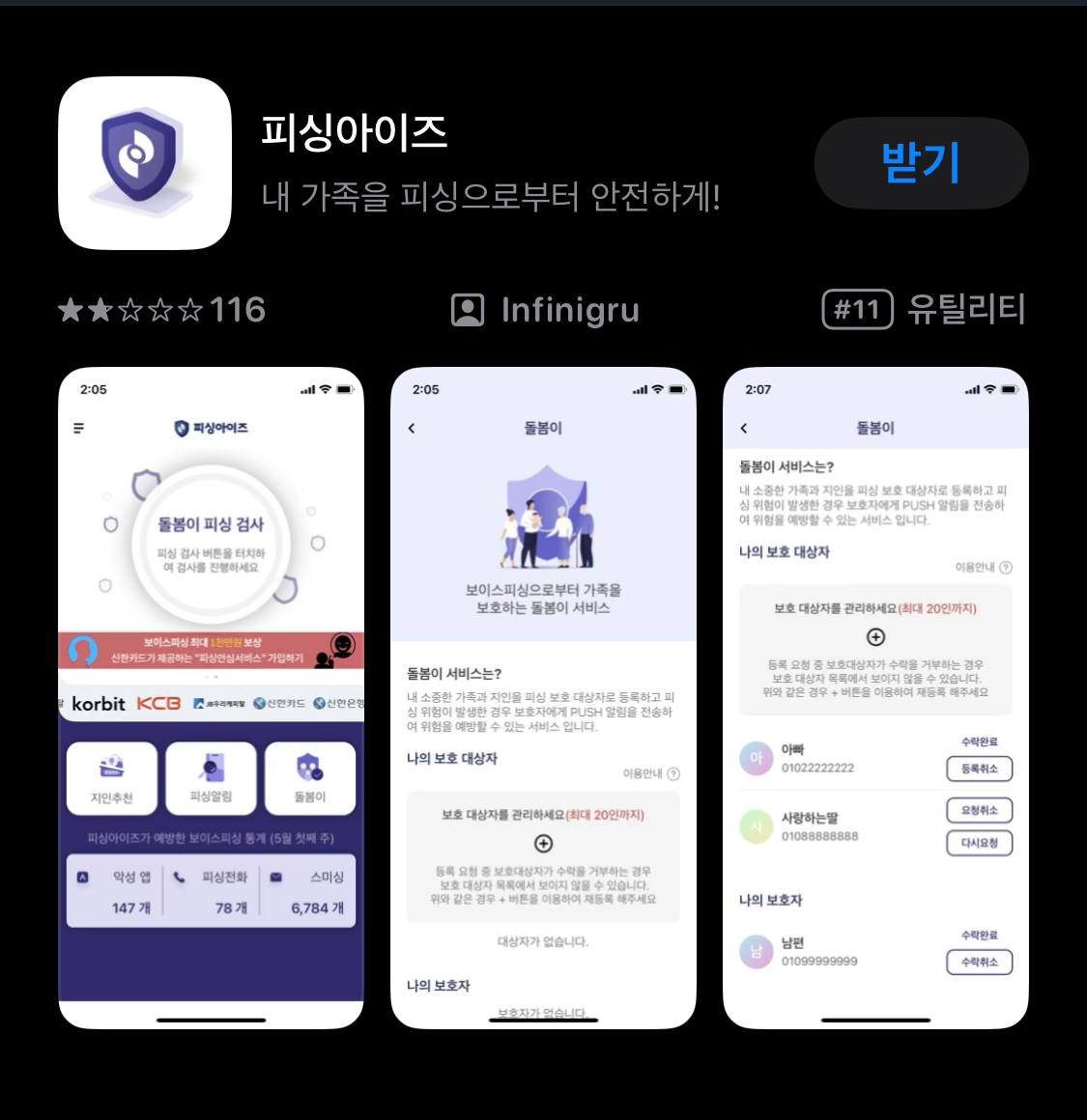이 앱은 개인 정보를 안전하게 저장할 수 있는 공간을 제공함과 동시에, 의심스러운 전화번호를 자동으로 차단해 주는 기능이 있습니다.