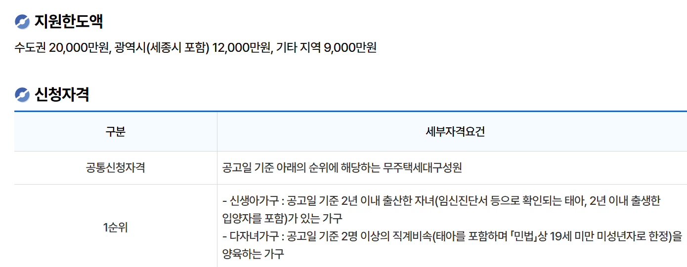소득 및 자산 기준 없음: 무주택자라면 누구나 신청할 수 있어 중산층까지 지원이 확대되었습니다.