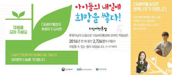 누군가의 내일을 바꿔줄 수 있는 아주 특별한 통장이 있다는 사실, 알고 계셨나요? 바로 '디딤씨앗통장'입니다.